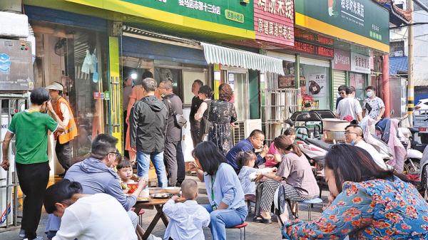 各店家忙碌着招呼自家摊前的客人,客人或相对而坐,或紧挨一起,有刚刚放学的学生,有相约一起的好友,有其乐融融的一家人,还有外卖小哥夹杂其中,行色匆匆,热气腾腾。三名中年男子围坐一起,对着刚点的餐食大快朵颐……人间烟火气,就在这日复一日最平凡的生活里。[详细]